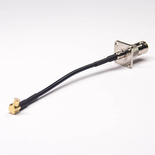 Kabel BNC 4Loch Flansch gerade Buchse 50Ohm auf MCX rechtwinklig mit RG174