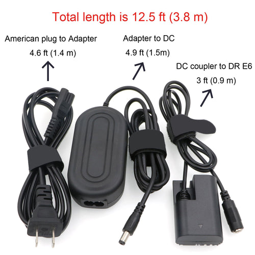 ELECBEE Cables ACK E6 Ersatz-Netzteilkabel-Set, Dummy-Akku für Canon EOS 5DS R 5D Mark II 5D Mark III 5D Mark ¢ô 6D 60D 60Da 7D Mark II 70D 80D aus der Wechselstromsteckdose, vollständig dekodierter Smart Chip