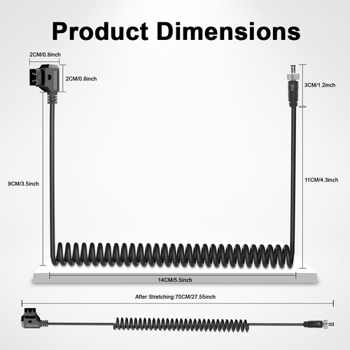 ELECBEE Cables ATOMOS Monitor Spiral-Stromkabel Verriegelung DC 5.5 2.1 auf D Tap für Videogeräte PIX-E7 7 Touchscreen-Display Hollyland Mars 400s