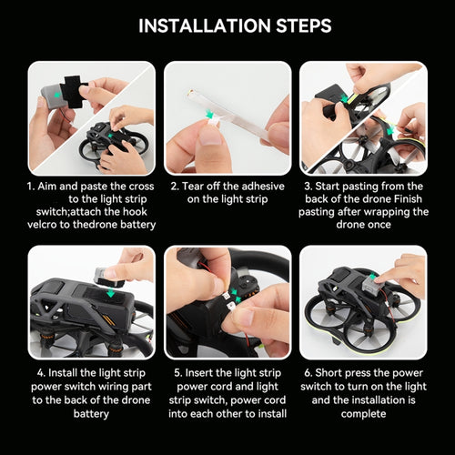 4. The power supply of the light belt is installed by hook and loop fastener. Just paste the hook surface on each drone battery, and the power supply of the light belt can be easily disassembled