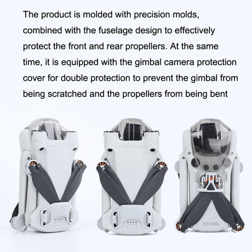 7. The product is molded with precision molds, combined with the fuselage design to effectively protect the front and rear propellers. At the same time, it is equipped with the gimbal camera protection cover for double protection to prevent the gimbal from being scratched and the propellers from being bent