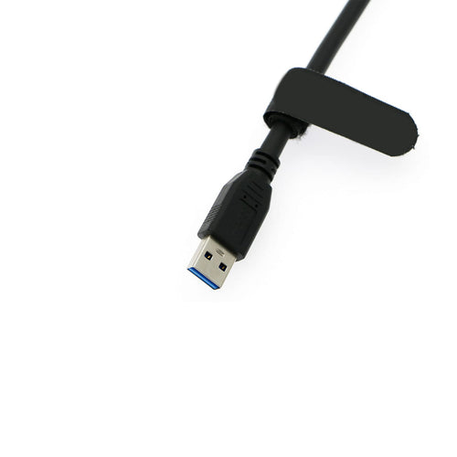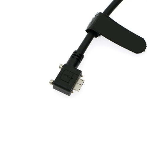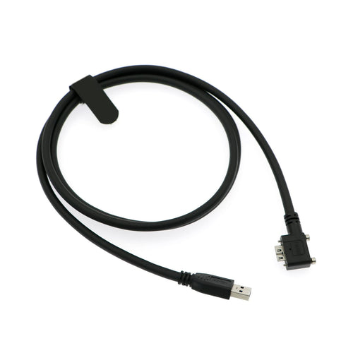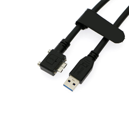 - Plug A: Left Angle Micro B Male with Dual Screw Lock; Plug B: USB 3.0 USB-A.