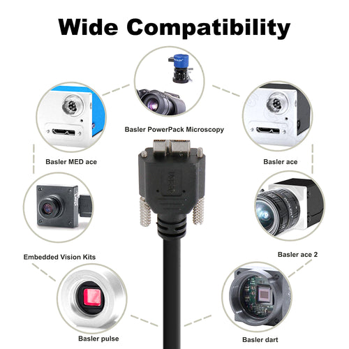 - This USB 3.0 cable is compatible with Basler MED ace/ PowerPack Microscopy/ ace/ ace 2/ dart/ pulse/ Embedded Vision Kits for data transfer.