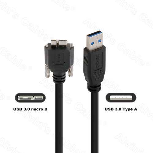 - Plug A: Micro B with locking screws; Plug B: USB 3.0 Type A.