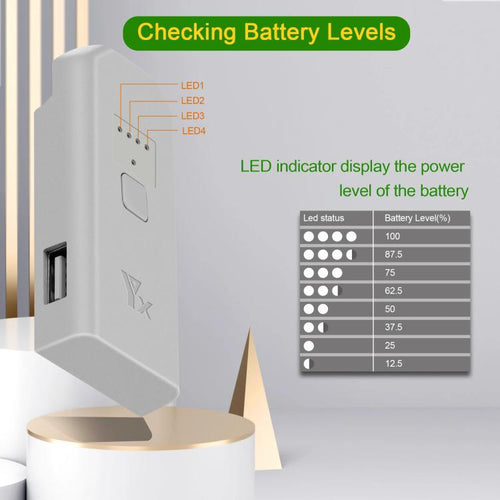 4. The LED indicator can be used to check the displayed battery level