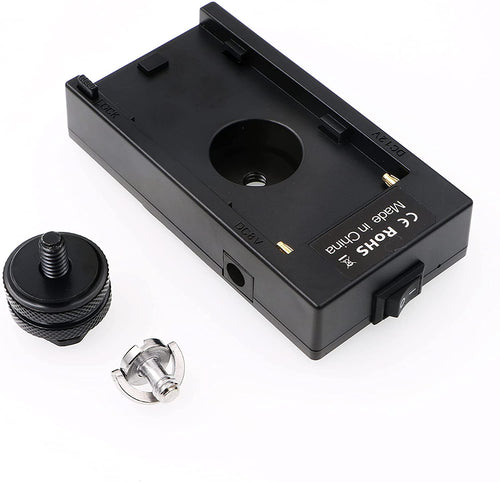 - With a 1/4" manual screw and hot shoe mount, you can easily install the battery plate on your camera or other device. There is a power switch to control, please turn off it when the temparature is too high.