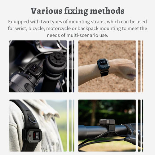 5. Two fixing methods. The set is equipped with two kinds of fixing straps. One can be used for wrist fixing, which is suitable for some close sports. The extended wrist strap design is suitable for most people. The other can be used for fixing on bicycles, motorcycles, and backpacks. It can be used for transportation and running assembly. Two perfect fixing straps can solve most outdoor sports and adventure shooting.