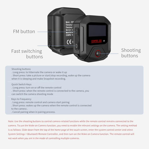 1. Exclusive design. The Bluetooth remote control with screen is designed for 360 series cameras. By connecting to the camera, you can control the camera remotely for shooting.